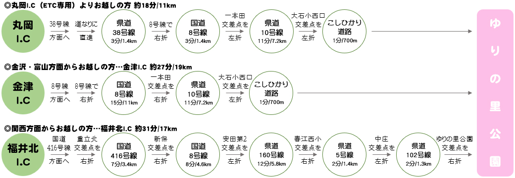 ゆりの里公園最寄りインターの丸岡I.Cは、ETC専用となります。