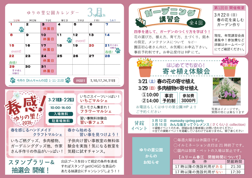 26年3月の公園カレンダーを更新しました。
