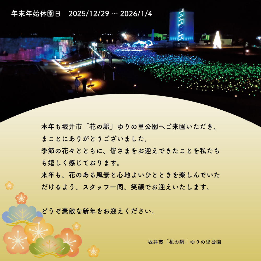 ※農産物直売所「ゆりいち」のみ12/29(月)~30(火)営業