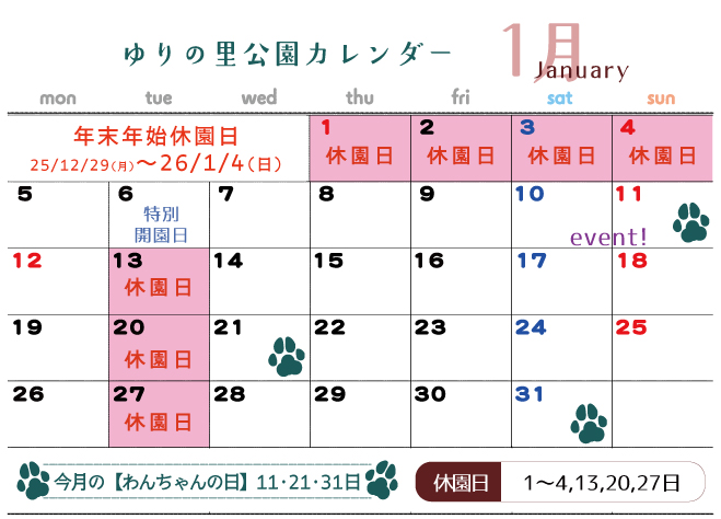 ※ワンちゃんの日:毎月 1日・11日・21日・31日