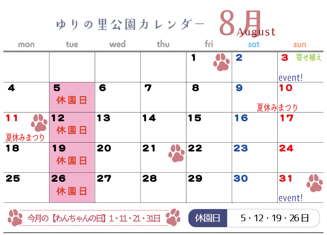 ※ワンちゃんの日:毎月 1日・11日・21日・31日
