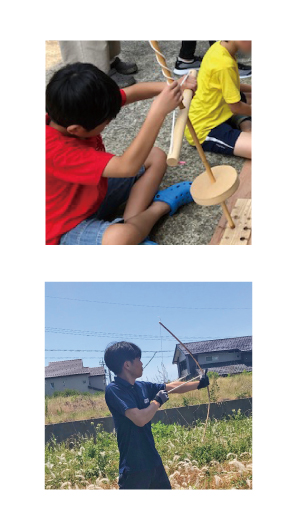 火起こし、弓矢、クイズに挑戦して缶バッジをゲットしよう!