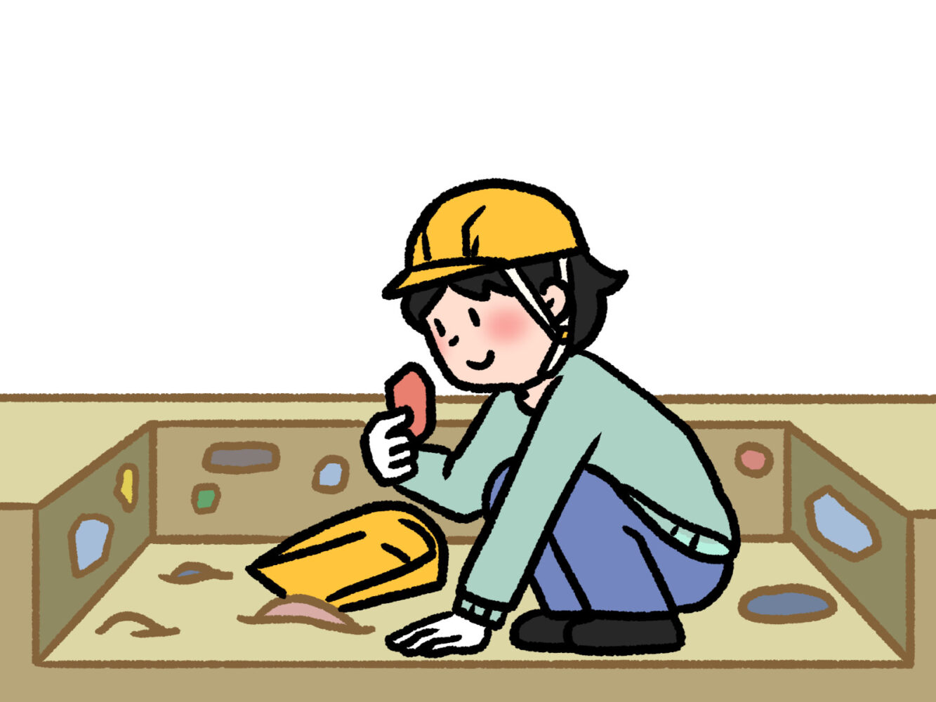 発掘作業を擬似体験。土の中に埋まった宝物を探そう!本物の発掘道具の展示も開催予定。