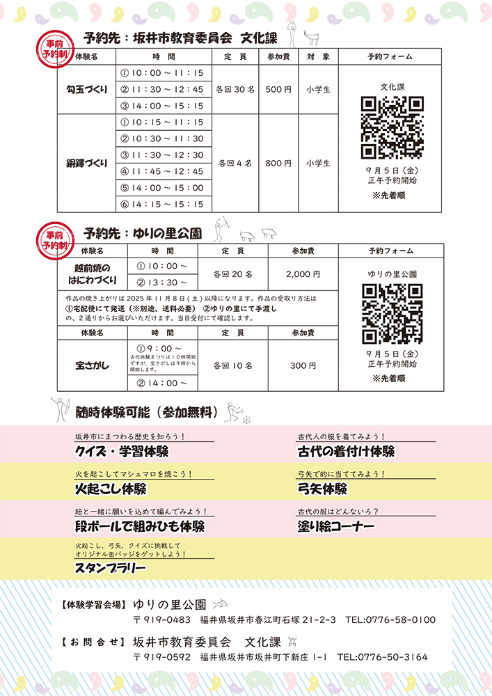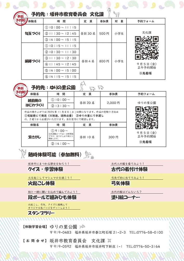 古代に生きた人々のものづくりや体験を通して、坂井市の古代の歴史を楽しく学びませんか?
