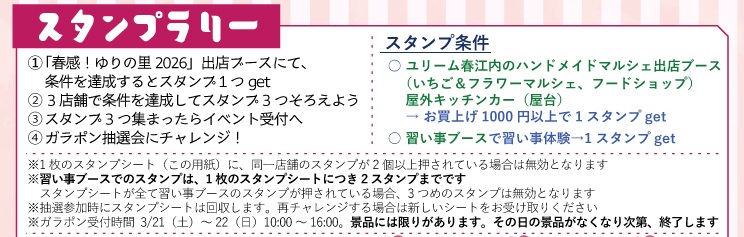 また、会場内では「出店ブースを巡るスタンプラリー」を開催!豪華賞品が当たる抽選会も実施します。