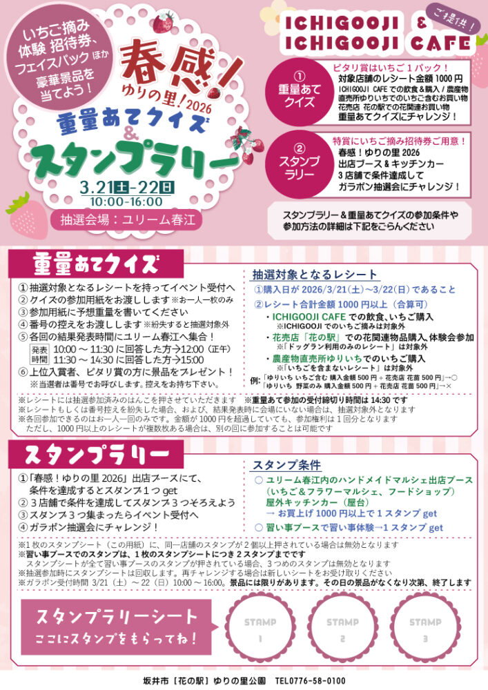 春感!ゆりの里!2026期間中、いちごフェアを開催予定です。