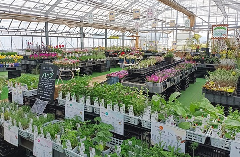 第一駐車場の南側にある大きなハウスにて花の駅 花苗売店を営業中です。花の駅では、花の苗や球根を販売しております。土や鉢なども取り扱っており、苗を選んでいただき寄せ植えが作れるコーナーもあります。植え方や花選びなど、スタッフがアドバイスいたしますのでお気軽にお越しください。