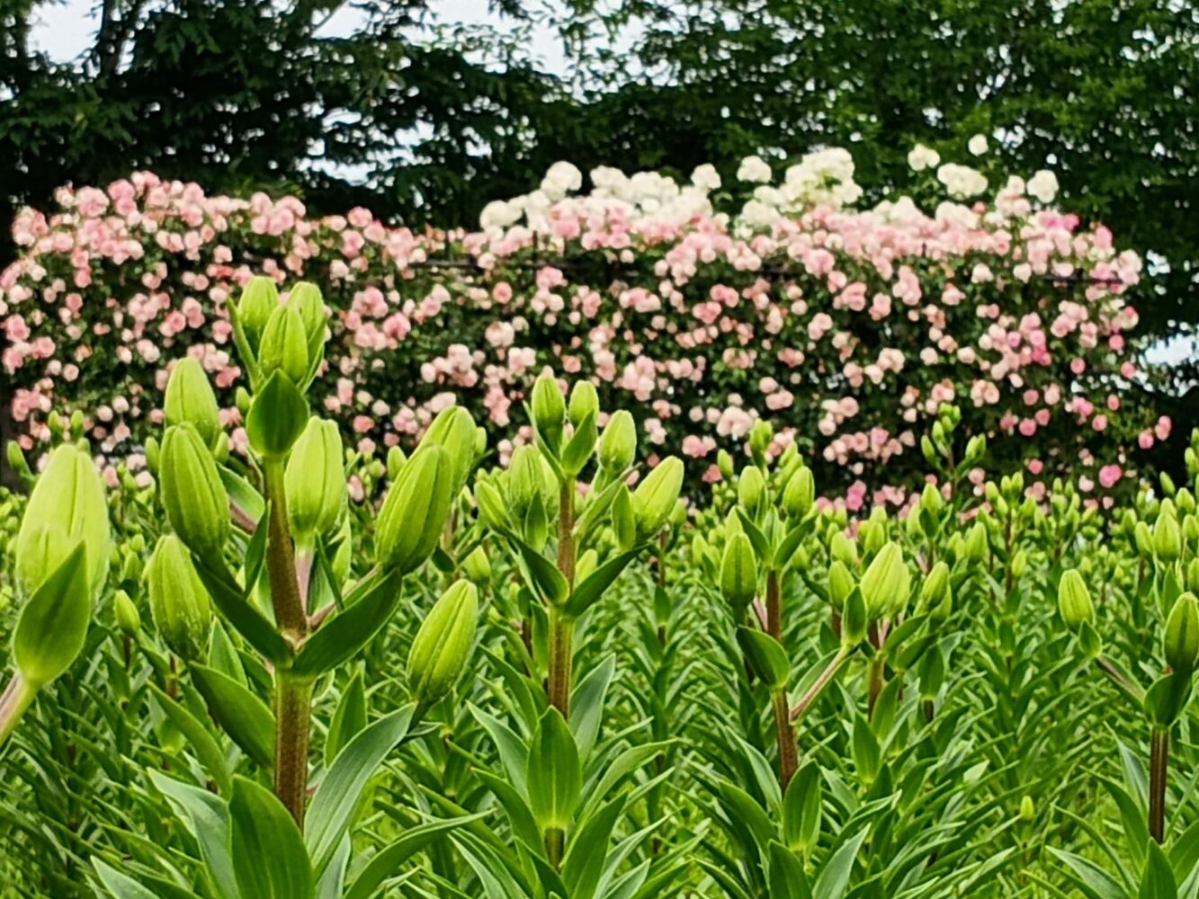 と言っても、開花したのはごくわずか。全体的にはつぼみの状態です。比較的涼しい日が続いているので、5月上旬にはすでに暑かった去年と比較するとのんびり…といったところでしょうか。