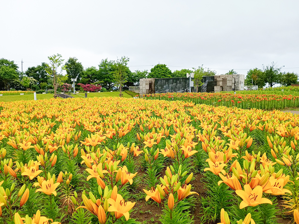 南側の第一駐車場から見ると、ゆり圃場の奥側になります。
