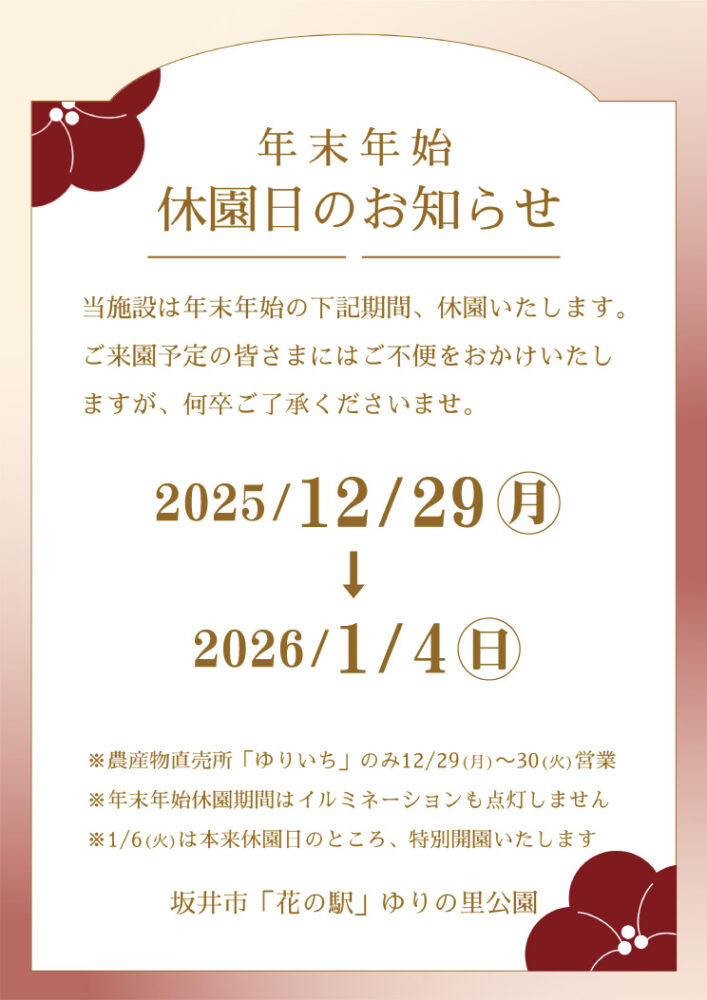 休園期間:2025/12/29(月)→2026/1/4(日)
